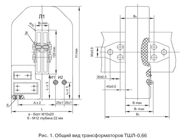 Общий вид трансформатора тока ТШЛ-0,66 (чертеж)